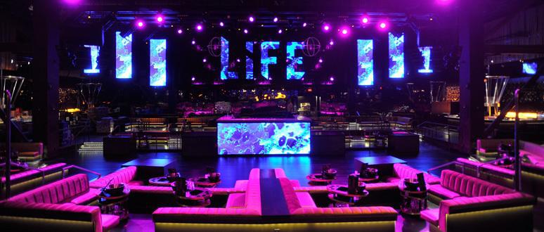 LiFE Nightclub offers a layout where partygoers can catch a glimpse of the DJ from every corner of the main room. There are 70 different VIP booth which are strategically placed with unobstructed views of the DJ booth. A massive LED screen towers behind the DJ booth in the center of the main room. There are 3 separate bars where patrons can order drinks.